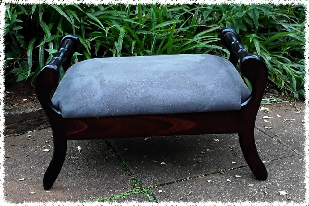 dark wood foot stool with upholstered foot rest