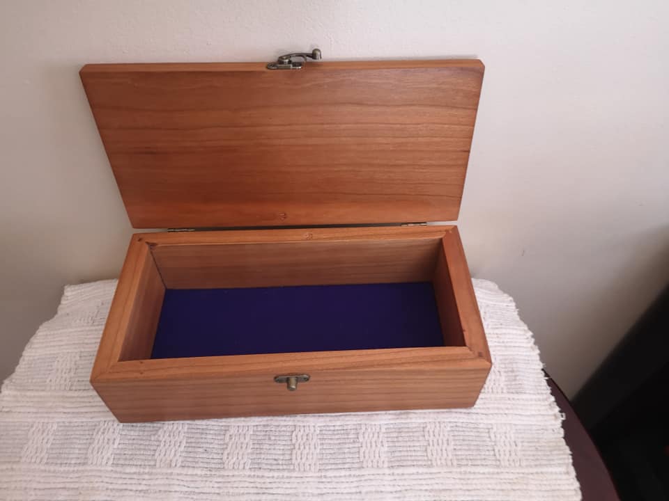 solid wood jewellery box showing inner