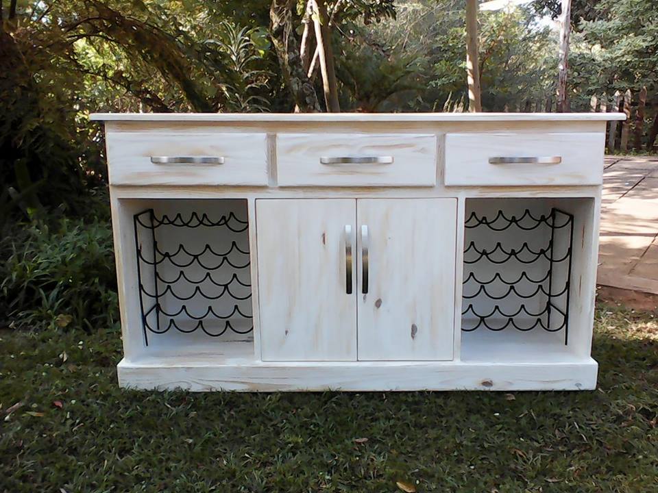 white wash solid timber crafted server unit with wine rack