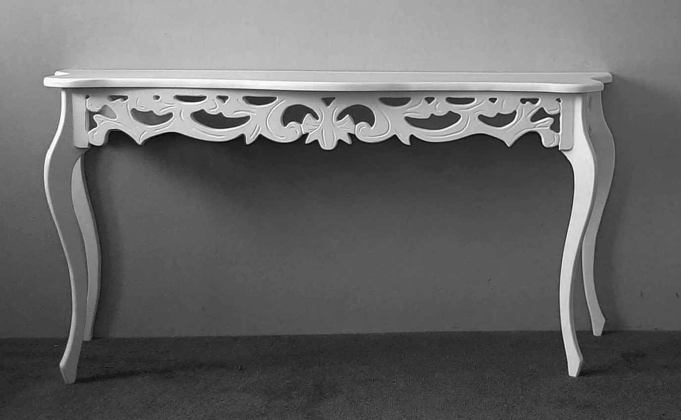 curved leg side table with ornate carving detail in white