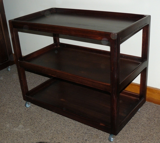 Solid wood three tier trolley on wheels
