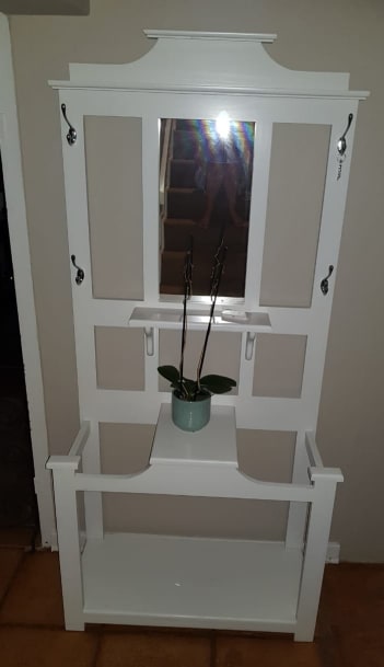 Country cottage coat rack and umbrella stand for a hallway, with mirrior