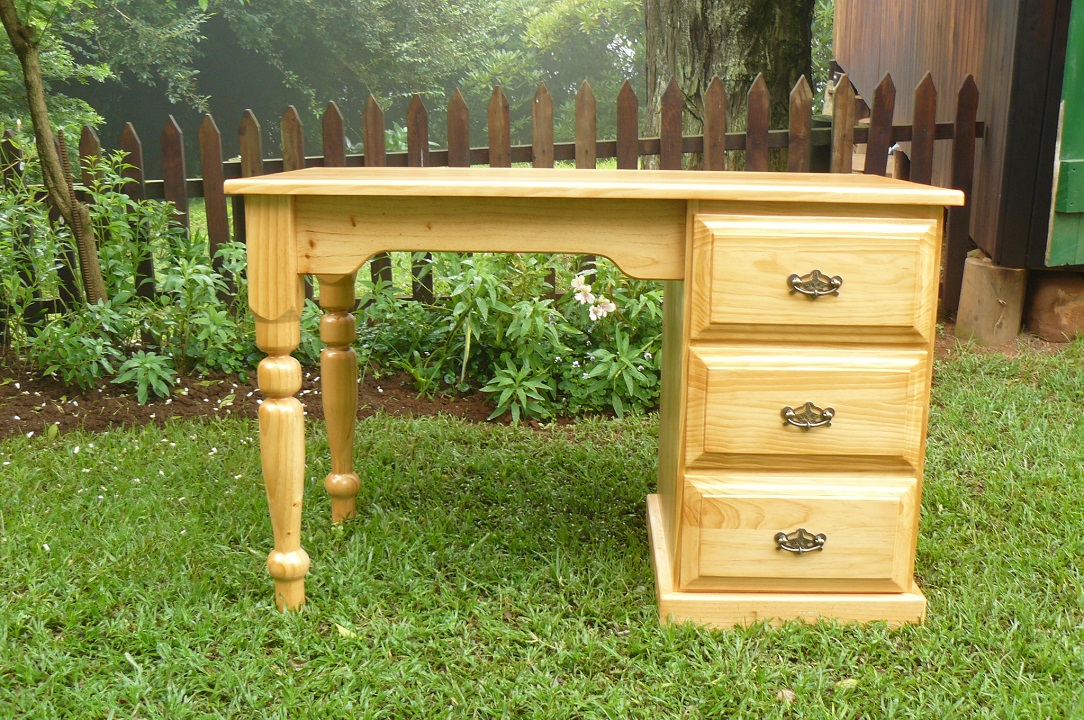 Cyrpess desk with three large drawers and ornate handles