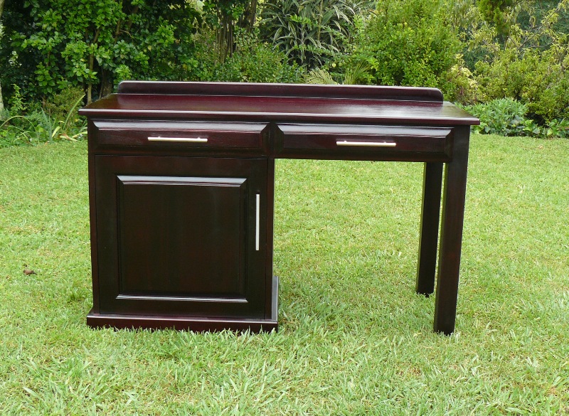 Stained Saligna desk, large and formal, 4 drawers