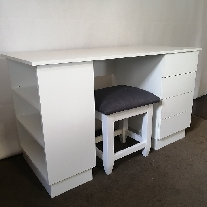 White dressing table with 3 drawers and matching stool